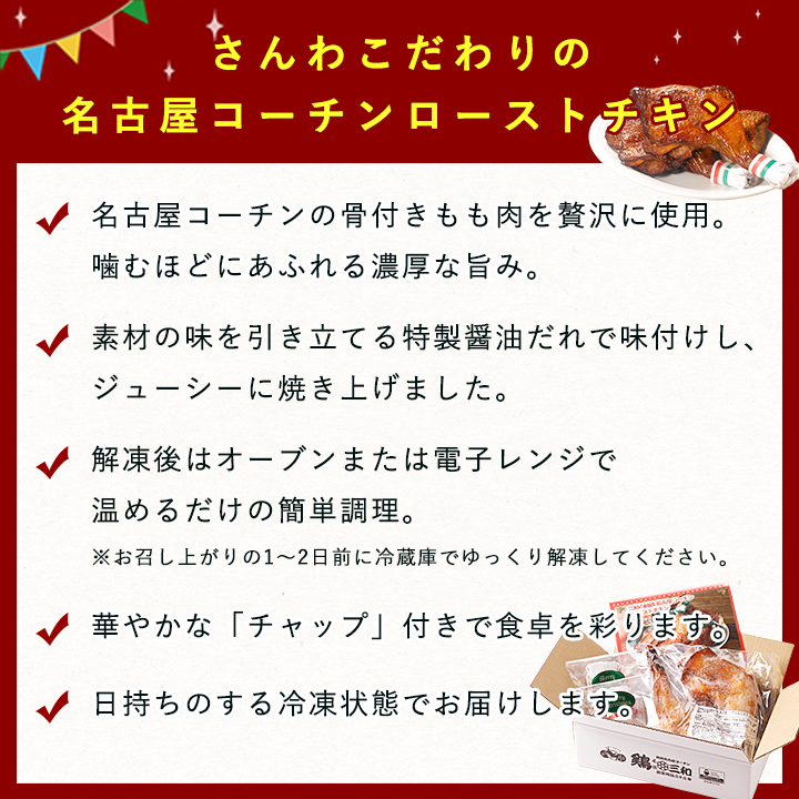 | 商品名 | 三和の純鶏名古屋コーチン ローストチキン(レッグ 2本入) |
