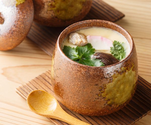 - 4器に②の具材を入れ、③を茶こしを通しながら注ぎ入れ、アルミホイルを被せます。